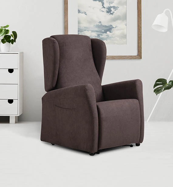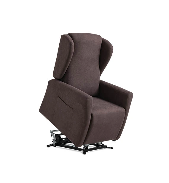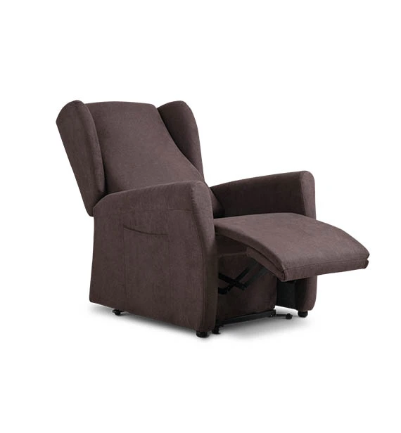 Chiara, poltrona relax alzapersona e reclinabile con 2 motori indipendenti, dalla linea classica con alette e bracciolo imbottito.
