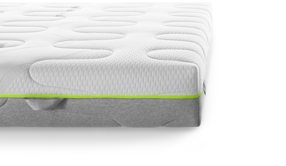 Fitness Memory è modellato a sette zone di accoglimento differenziato, con lavorazione stretch e strato superiore in memory automodellante e termosensibile.